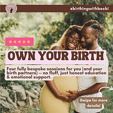 The Own Your Birth Prep Package gives you the tools, strategies, and mindset support to feel prepared, informed, and like an active participant in your birth experience. Across four private hypnobirthing sessions, we go beyond the basics. You’ll explore your options, build a personalised birth plan, and practise techniques that genuinely support your body and mind. Birth partners are welcome too - they’ll leave feeling just as empowered as you. So what's included? ✨4x private hypnobirthing sessions (either in person or online) ✨A fully individualised birth preparation plan based on your wants, worries & needs. ✨Birth physiology + the stages of labour explained clearly, helping eradicate fear of the unknown. ✨Tools for managing pain and staying grounded, including breathwork, movement, and visualisations. ✨Nervous system support woven throughout. ✨Advocacy & decision-making support, so you'll know your rights and feel confident speaking up. (Covering use of language, scripts, decision making tools & role-playing specific scenarios if helpful). ✨Birth partner preparation, so they can feel confident supporting you. They'll know exactly how to hold space for you, & advocate for you when necessary. ✨Optional personalised hypnobirthing tracks if required. ✨WhatsApp/email check-ins from booking to birth. ✨Post-session summaries and bonus resources delivered to your inbox. This package is for you if: ✨You want a deeper understanding of how birth works and how to work with it. ✨You’re looking for something more personal than a generic antenatal class. ✨You want your partner to feel prepared, not panicked. ✨You’ve had a previous birth trauma and are wanting a safe space to share your experience, unpack your triggers, and work with a new approach. ✨You’re ready to feel informed, calm, and like an active participant in your birth experience. Optional add ons (for the Own Your Birth Prep package): ✨Discounted Vagus Nerve Therapy add-on (£45 instead of £55) ✨Discounted Post Birth Recovery Session add-on (£55 instead of £75) ✨Extra 60-min birth prep top-up – £55